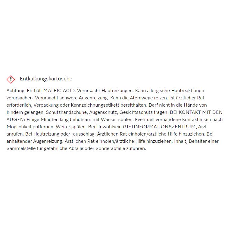 GP DC 001 CEntkalkungskartusche zur automatischen Entkalkung von Miele Kaffeevollautomaten.EntkalkungskartuscheArtikel-Merkmale:Gründliche Entfernung von Ablagerungen und VerkalkungenHöchst effektive und dabei materialschonende EntkalkungGanz ohne manuellen AufwandKeine Rückstände von Chemie nach EntkalkungEine Packung hält ca. 1 JahrBeste Pflege für viele Jahre VerlässlichkeitHerstellerMIELEWerksnummer10224080TypennummerEAN4002515630426Datenblatt.pdfPreis inkl. gesetzl. MwSt., ggf. zzgl. VersandkostenDieser Artikel ist im Geschäft bestellbar. Nutzen Sie unsere Produktanfrage für Fragen zum Artikel.ProduktanfrageHaben Sie Fragen zu diesem Produkt?Frage stellenSie haben noch Fragen oder wünschen eine persönliche Beratung vor Ort?Wir von Miele-Spezialist Wollersheim helfen Ihnen gerne weiter!Jetzt Kontakt aufnehmenSie haben noch Fragen oder wünschen eine persönliche Beratung vor Ort?Wir von Miele-Spezialist Wollersheim helfen Ihnen gerne weiter!Jetzt Kontakt aufnehmenHighlightsProduktsteckbriefTechn. DatenServiceleistungHighlightsWeitere VorteileMiele ReinigungsprodukteImmer perfekte ErgebnisseDie speziell für Miele Geräte entwickelten Produkte garantieren hygienisch einwandfreie Ergebnisse. Mögliche Ablagerungen werden restlos entfernt. So bleibt die Leistungsfähigkeit Ihres Gerätes erhalten.ProduktsteckbriefImmer perfekte ErgebnisseDie eigens auf die Miele Geräte abgestimmten Rezepturen stehen für zuverlässig perfekte Ergebnisse.Techn. DatenMarkennameMiele Werks-Nr.10224080 ServiceleistungService, den wir Ihnen gerne bieten.Als Fachhändler endet unsere Leistung nicht mit dem Bezahlen - wir lassen Sie auch beim Onlineeinkauf nicht im Stich. Denn wir montieren und installieren Ihre Großgeräte auf Wunsch und erklären Ihnen dann ausführlich, wie Sie diese jetzt optimal nutzen können. So können Sie an Ihrer Neuanschaffung schon nach kurzer Zeit Freude haben.Diesen Service bieten wir Ihnen in einem Umkreis von 20 rund um 67657 Kaiserslautern. Die Preise für Montagearbeiten berechnen sich nach Aufwand - hier erstellen wir Ihnen gern auf Wunsch ein individuelles Angebot.Für eine Vielzahl von Service- und Montageleistungen bieten wir Ihnen, abhängig vom Gerätetyp, vorkalkulierte Preise, die Sie sich schon bei der Onlinebestellung sichern können. Diese Leistungen finden Sie in unserem Onlineshop direkt am Gerät.HINWEIS: Verantwortlich für die Produktinformationen und Abbildungen dieses Artikels ist die ieQ-systems mgk GmbH.Herstellerkontaktdaten von MIELEhttps://www.miele.de/c/kontakt-11.htminfo@miele.de05241 89-0Carl-Miele-Straße 29, 33325 Gütersloh, DeutschlandHINWEIS: Die Herstellerkontaktdaten werden regelmäßig geprüft. Änderungen seitens der Hersteller können jedoch zeitverzögert bei uns eingehen.Dieser Artikel ist im Geschäft bestellbar. Nutzen Sie unsere Produktanfrage für Fragen zum Artikel.×Frage zum Artikel:MIELE - GP DC 001 CArt der KontaktaufnahmeTelefonMailNameVornameStraßePLZOrt*E-Mail*TelefonMIELE - GP DC 001 CAnfrageIch habe die Datenschutzbestimmungen zur Kenntnis genommen* Wir erheben, verarbeiten und nutzen die von Ihnen angegebenen personenbezogenen Daten nur zum Zwecke der Abwicklung der Kontaktanfrage.Captcha**PflichtfelderSendenPreis auf Anfrage