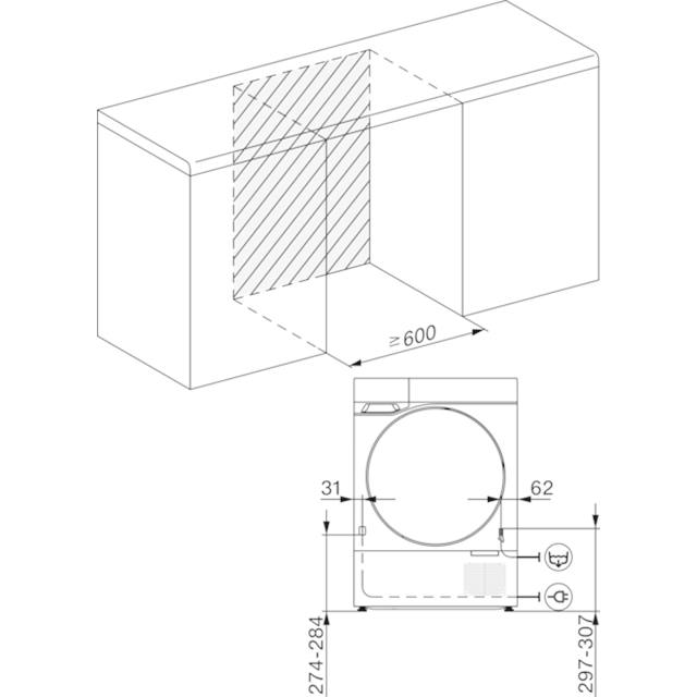 Gerätetiefe bei geöffneter Tür in mm